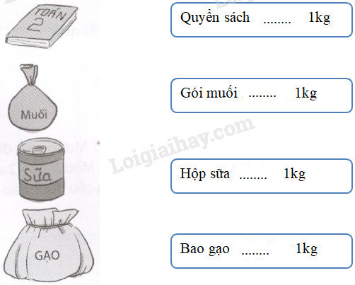 Dùng các từ đã cho để điền vào chỗ trống thích hợp với từng khối lượng của các loại đồ vật.