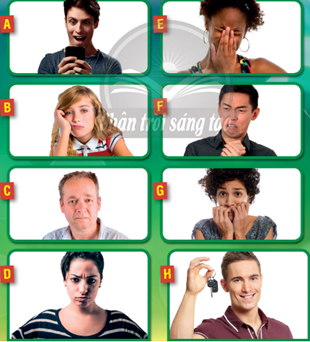 (Hãy nghĩ ra những tính từ thay thế để mô tả cảm xúc trong các bức ảnh.)