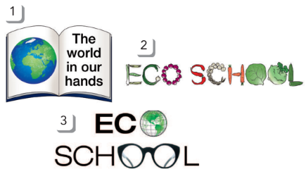 1. In pairs, look at three suggested logos for a new eco-school. Which one would you choose? Why?