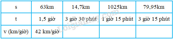 v = s : t = 63 : 1,5 = 42 km/giờ