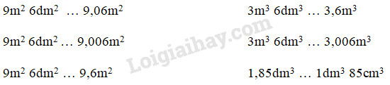 Đổi số đo ở hai vế về cùng một đơn vị đo rồi so sánh kết quả với nhau.