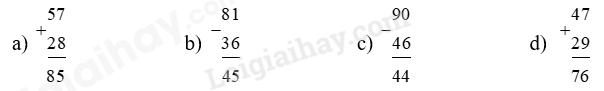 a) 57 + 28                  b) 81 – 36                  c) 90 – 46                   d) 47 + 29