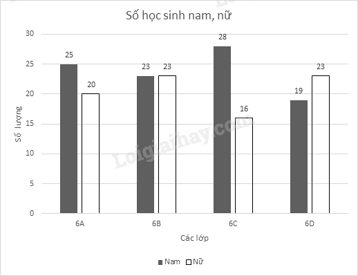 Biểu đồ dưới đây biểu diễn số học sinh nam và nữ của các lớp khối 6 của một trường THCS.