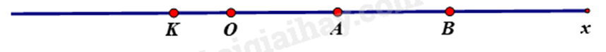 b) Ta có A thuộc tia Ox, K thuộc tia đối của tia Ox nên A và K nằm khác phía đối với O hay O nằm giữa K và A.