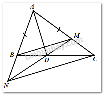 c) Kéo dài \(AB\) và \(MD\) cắt nhau ở \(N\). Chứng minh \(\Delta BDN = \Delta MDC\).