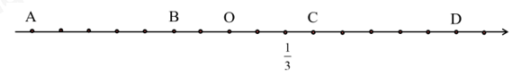 Điểm B nằm bên trái gốc O và cách gốc O một khoảng bằng \(\dfrac{1}{3}\) nên điểm B biểu diễn số hữu tỉ \(\dfrac{{ – 1}}{3}\).