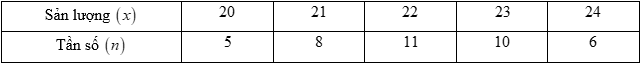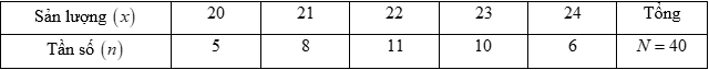 Câu 16: Sản lượng lúa của 40 thửa ruộng thí nghiệm có cùng diện tích được trình bày trong bảng tần số sau đây: (đơn vị: tạ)