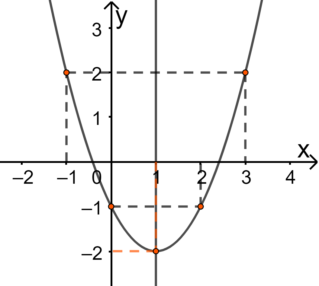 Vậy parabol cần tìm là: \(y = {x^2} – 2x – 1\).