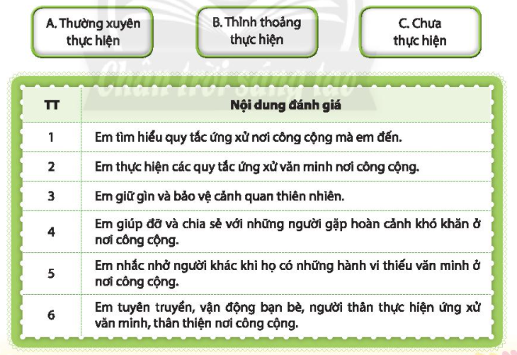 Với mỗi nội dung đánh giá sau đây, hãy xác định một mức độ phù hợp nhất với em.