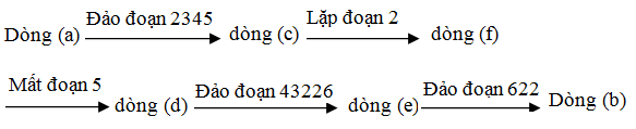 Bắt đầu từ dòng a, xác định dòng được tạo thành qua một lần đột biến, lần lượt với các dòng tiếp theo