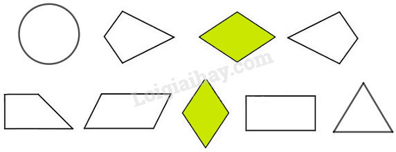 Tìm trong hình sau 1 hình thoi rồi tô màu vào hình thoi đó: