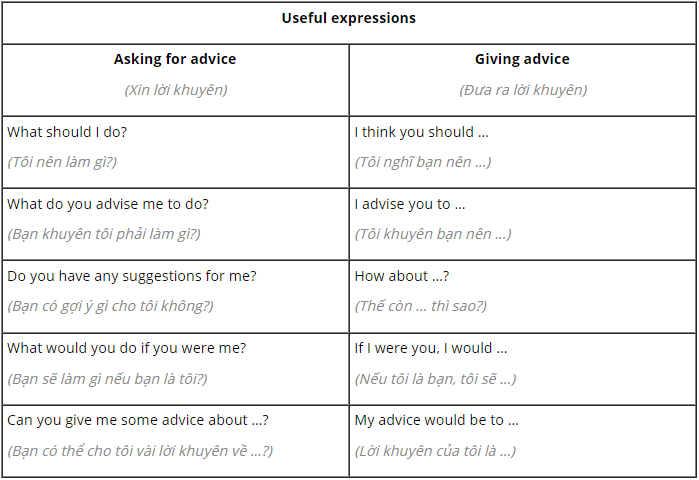 (Làm việc theo cặp. Thực hiện các đoạn hội thoại tương tự để yêu cầu và đưa ra lời khuyên về lối sống xanh. Sử dụng các cụm từ dưới đây để giúp bạn.)
