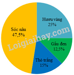 – Từ biểu đồ ta thấy có 25% số học sinh là cổ động viên của đội Hươu Vàng, 12,5% số học sinh là cổ động viên của đội Gấu Đen, 15% số học sinh là cổ động viên của đội Thỏ Trắng và 47,5% số học sinh là cổ động viên của đội Sóc Nâu. Từ đó ta tìm được số học sinh là cổ động viên của từng đội.