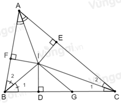 + Sử dụng tính chất ba đường phân giác của tam giác, chứng minh \(AI\) là phân giác của \(\widehat {BAC}\)