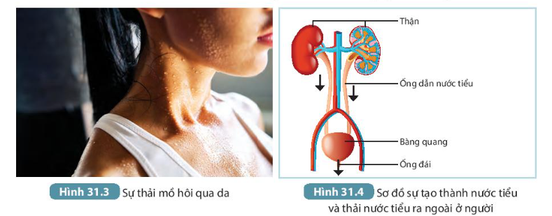 Câu 2: Quan sát Hình 31.3 và 31.4, cho biết nước đào thải ra khỏi cơ thể như thế nào?