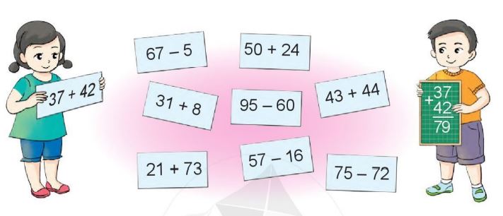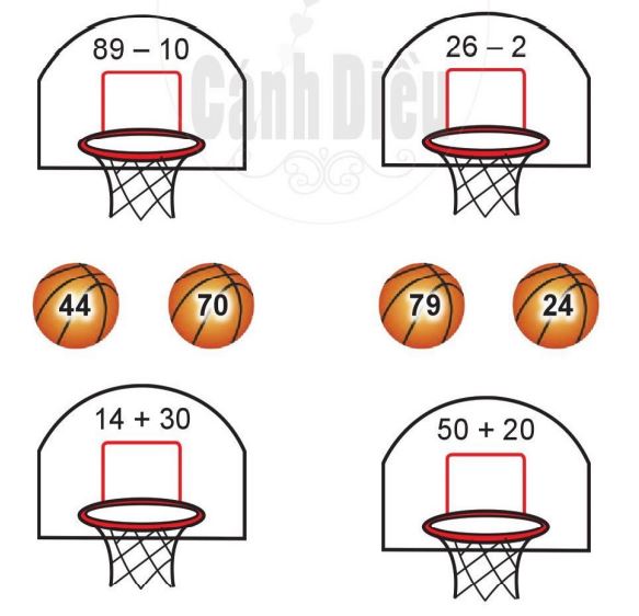 Quan sát hình, tính các phép tính trong hình và chọn kết quả đúng của từng phép tính.