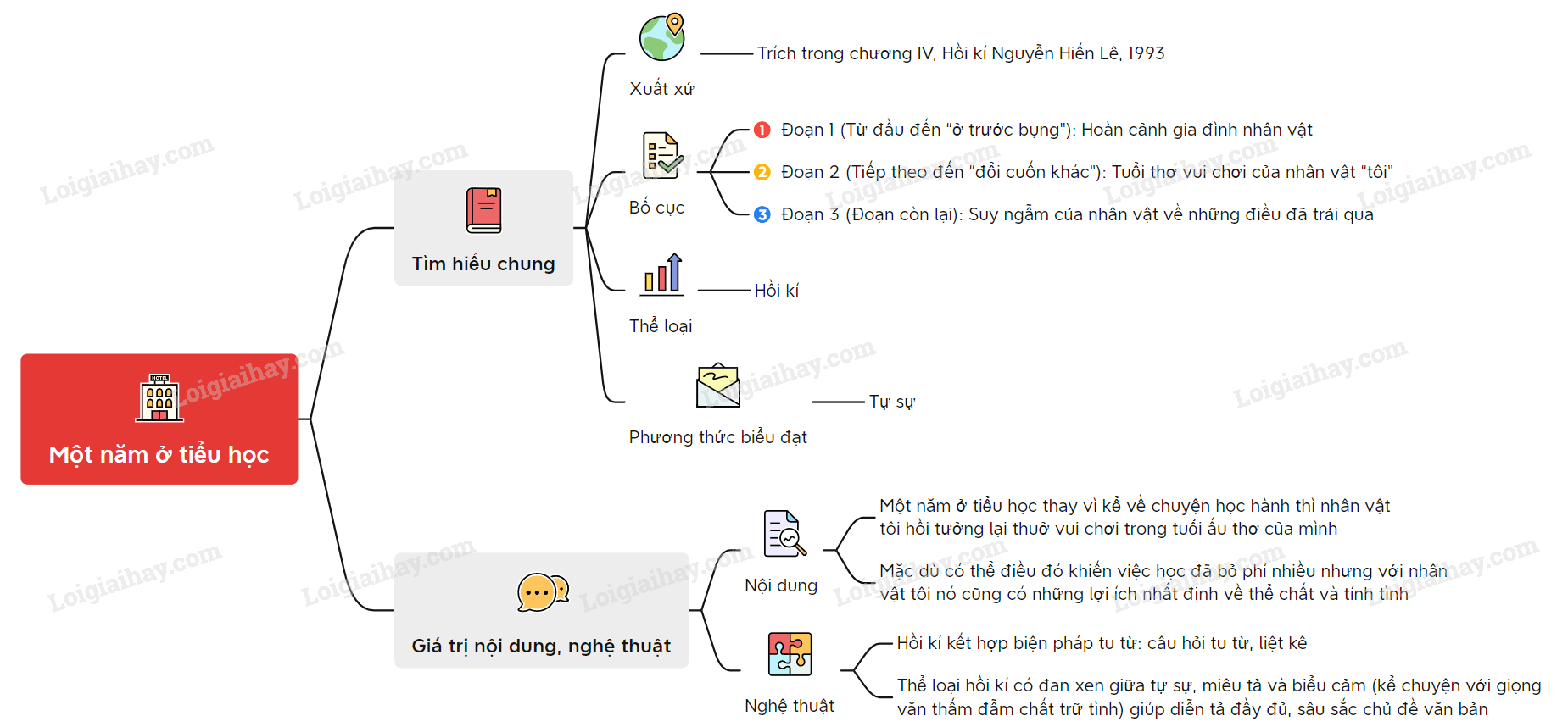 Sơ đồ tư duy về văn bản “Một năm ở tiểu học”: