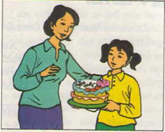 b) Vào ngày sinh nhật của mẹ, Huyền đã làm một chiếc bánh kem thật đẹp để chúc mừng.