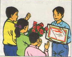 c) Tuấn là một học sinh năng động. Bạn ấy đã tham gia nhiều hoạt động từ thiện khác nhau trong thị trấn. Tuấn đã được tuyên dương là người hoatj động tích cứu nhất trong các chương trình từ thiện của thị trấn.