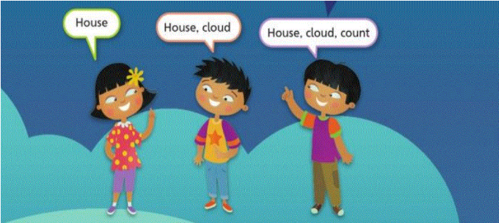 Cách chơi: Một bạn nói sẽ đưa ra một từ, ví dụ “House”. Bạn khác sẽ phải tìm và nói một từ khác tiếp theo có chứa  “ou”, ví dụ “House, cloud”, bạn tiếp theo sẽ là “House, cloud, count”. Cứ lần lượt như vậy cho đến khi kết thúc.