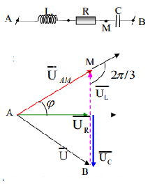 Ta có: $u_{MB}$ và $u_{AM}$ lệch pha nhau \(\dfrac{\pi }{3}\)