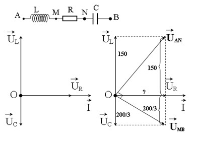 \(U_R^2 = {U_L}{U_C} = 150.\dfrac{{200}}{3} \to {U_R} = 100V\)