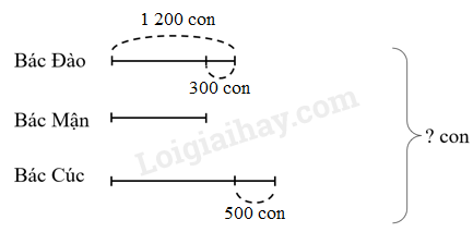 Đàn vịt nhà bác Đào có 1 200 con. Đàn vịt nhà bác Mận có ít hơn đàn vịt nhà bác Đào 300 con. Đàn vịt nhà bác Cúc có nhiều hơn đàn vịt nhà bác Đào 500 con. Hỏi số vịt của nhà bác Đào, bác Mận và bác Cúc có tất cả bao nhiêu con?