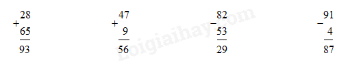 28 + 65                        47 + 9                          82 – 53                        91 – 4