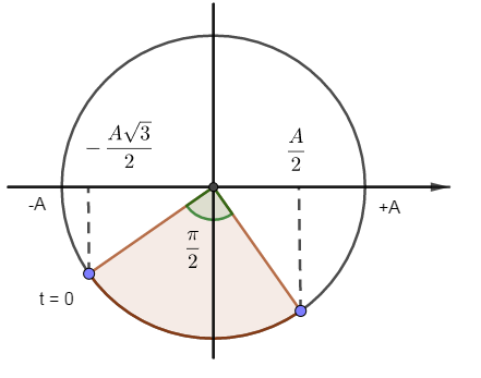 $\begin{array}{l}{A_x} = 5{A_y}\\ \to A_x^2 = 25A_y^2\\ \leftrightarrow A_1^2 + A_2^2 + 2{A_1}{A_2}{\rm{cos}}\left( {{\varphi _1} – {\varphi _2}} \right) = 25\left( {A_1^2 + A_2^2 – 2{A_1}{A_2}cos\left( {{\varphi _1} – {\varphi _2}} \right)} \right)\\ \leftrightarrow 52{A_1}{A_2}{\rm{cos(}}{\varphi _1} – {\varphi _2}) = 24A_1^2 + 24A_2^2\\ \to {\rm{cos(}}{\varphi _1} – {\varphi _2}) = \frac{{24A_1^2 + 24A_2^2}}{{52{A_1}{A_2}}} \ge \frac{{2\sqrt {24A_1^2.24A_2^2} }}{{52{A_1}{A_2}}} = \frac{{12}}{{13}}\\ \to \Delta \varphi  \le 22,{62^0}\end{array}$