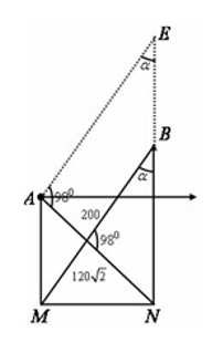 \(\begin{array}{l}N{E^2} = A{{\rm{E}}^2} + A{N^2} – 2{\rm{A}}N.A{\rm{Ecos98}}{\rm{,1}}{{\rm{3}}^0} \to NE = 280V\\\dfrac{{AN}}{{\sin \alpha }} = \dfrac{{NE}}{{\sin {{98,13}^0}}} \to \sin \alpha  = 0,6\\ \to {U_R} = MB{\rm{sin}}\alpha {\rm{ = 120V}}\end{array}\)
