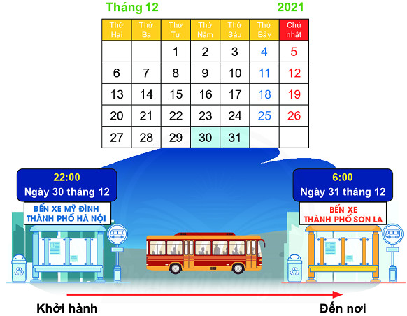 – Dùng mô hình đồng hồ để tính thời gian xe đi từ bến xe Mỹ Đình đến bến xe thành phố Sơn La.