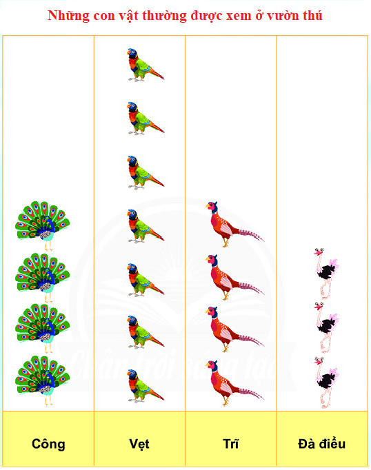 Biểu đồ tranh sau đây biểu thị một số con vật ở một vườn thú.