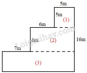 Diện tích mảnh đất là tổng diện tích hình (1), (2) và (3).