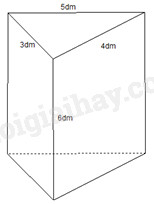 Ta có: \({3^2} + {4^2} = {5^2} \Rightarrow \) Đáy là tam giác vuông có 2 cạnh góc vuông có độ dài \(3dm,\,\,4dm\).