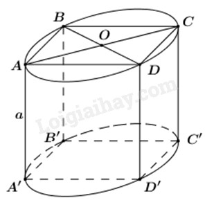 Do đó hình trụ có bán kính đáy \(R = OA = \dfrac{{a\sqrt 2 }}{2}\), chiều cao \(h = AA’ = a\).