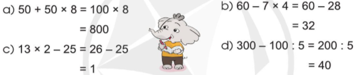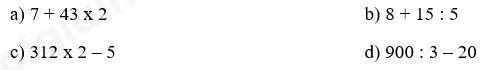 Nếu trong biểu thức chỉ có các phép tính cộng, trừ, nhân, chia thì ta thực hiện các phép tính nhân, chia trước; rồi thực hiện các phép tính cộng, trừ sau.