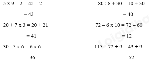 + Nếu trong biểu thức chỉ có các phép tính cộng, trừ, nhân, chia thì ta thực hiện các phép tính nhân, chia trước; rồi thực hiện các phép tính cộng, trừ sau.