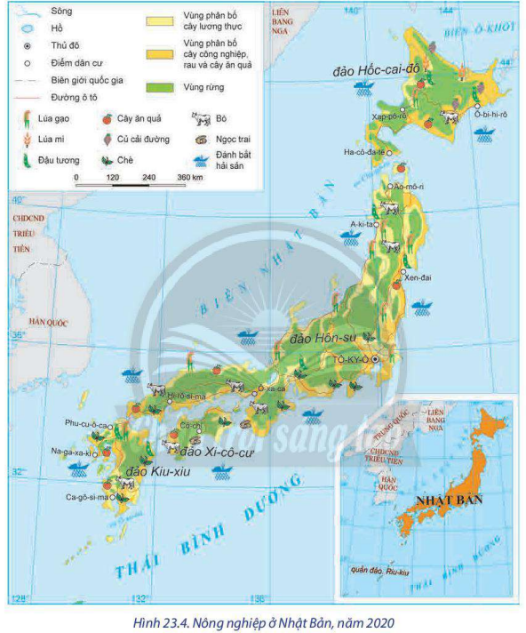 Nhận xét đặc điểm phân bố ngành nông nghiệp của Nhật Bản.