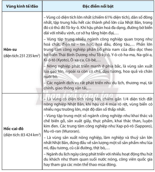 Dựa vào bảng 23.2, hãy nêu những đặc điểm nổi bật của các vùng kinh tế ở Nhật Bản.