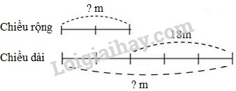 – Tìm hiệu giữa chiều dài và chiều rộng: nếu chiều rộng tăng thêm 9m, chiều dài bớt đi 9m thì mảnh đất trở thành hình vuông nên hiệu giữa chiều dài và chiều rộng là: \(9+9 =18m\).