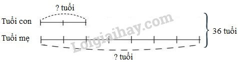 Câu 5. Tổng số tuổi hiện nay của hai mẹ con là 36 tuổi. Tuổi con bằng \(\dfrac{2}{7}\) tuổi mẹ. Hỏi: