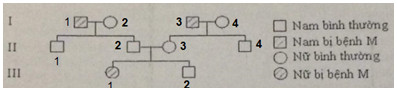 Câu 35: Khảo sát sự di truyền bệnh M ở người qua ba thế hệ như sau :