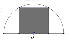 Câu 11: Từ một miếng tôn có hình dạng là nửa hình tròn bán kính 1m, người ta cắt ra một hình chữ nhật (phần tô đậm như hình vẽ). Phần hình chữ nhật có diện tích lớn nhất có thể cắt được là: