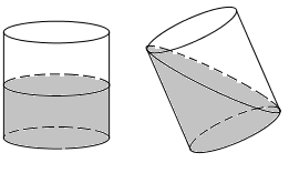 Câu 22: Đổ nước vào một chiếc thùng hình trụ có bán kính 20cm. Nghiêng thùng sao cho mặt nước chạm miệng thùng và đáy thùng (như hình vẽ) thì mặt nước tạo với đáy thùng một góc 450. Thể tích của thùng là: