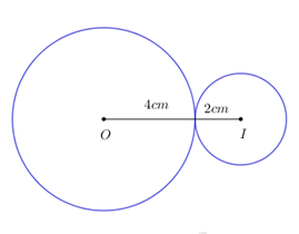Câu 8: Cho hai đường tròn \(\left( {O;\;4cm} \right)\) và đường tròn \(\left( {I;\;2cm} \right),\) biết \(OI = 6cm.\) Số tiếp tuyến chung của hai đường tròn đó là: