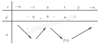 Vì \(\mathop {\min }\limits_{\left( { – \infty ;0} \right)} f\left( x \right) = f\left( { – 1} \right)\) nên hàm số đạt cực tiểu tại \(x =  – 1 \Rightarrow {x_2} =  – 1;{x_3} = 1\), khi đó \(a > 0.\)