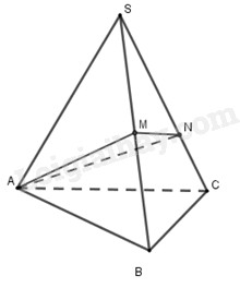 Câu 34: Cho hình chóp \(S.ABC\) có chiều cao bằng \(9,\) diện tích đáy bằng \(5.\) Gọi \(M\) là trung điểm của cạnh \(SB,\) điểm \(N\) thuộc cạnh \(SC\) sao cho \(NS = 2NC.\) Tính thể tích \(V\) của khối chóp \(A.BMNC.\)