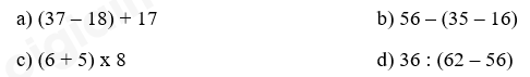 Tính. Cho biểu thức 56 : (45 – 38) x 2. Thứ tự thực hiện các phép tính …Một đoàn có 54 học sinh đi học tập trải nghiệm