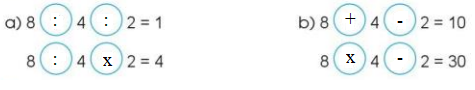 Chọn dấu (+, -, x, 🙂 hoặc dấu ngoặc () vào vị trí thích hợp để biểu thức có giá trị đúng: