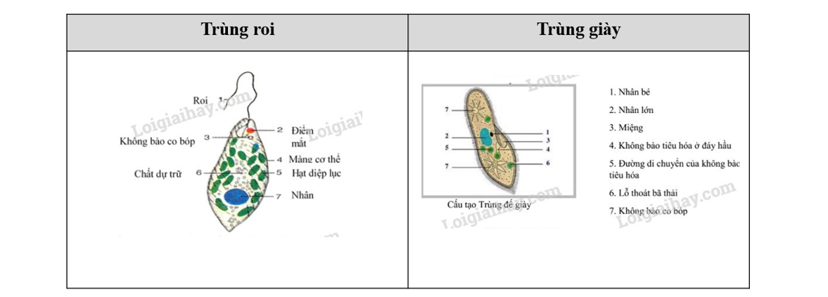 Những đặc điểm nào giúp em phân biệt được trùng roi và trùng giày?